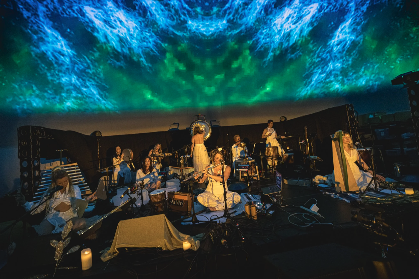 Sonic Devas is a collective of professional women musicians, sound healers, and wellness leaders dedicated to creating powerful musical meditations and transformative concert experiences. For over a decade, the ensemble has explored the intersection of music, culture, spirituality, healing, and performance—bringing its visionary work to churches, immersive domes, transformational festivals, and yoga spaces around the world.